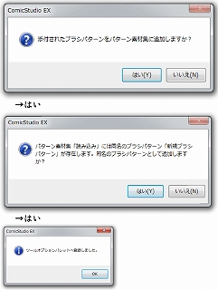 ブラシパターンが既にパターン素材集に存在する場合に、表示されるダイアログと