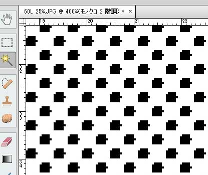 わかりやすいように表示倍率は100%。その後モノクロ2階調でレイヤー設定に従うで書き出しています