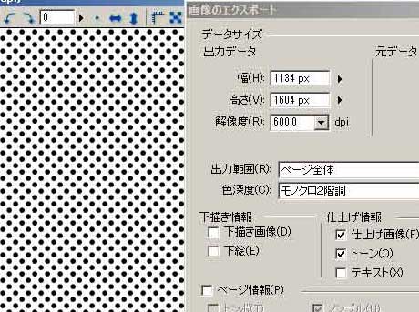 書き出し前↓普通に綺麗に点というか丸になってる網トーンです。