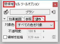 1.塗りつぶしツールや閉領域フィルを選択し、[ツールオプション]パレットを開きます。