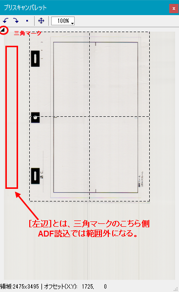 多分、旧来の変形作画用紙でもADF中央寄せなので、[左辺]は範囲外になっていると思います。
