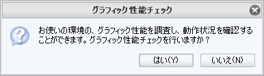グラフィック性能チェックは、起動時に一度実行いただくと以降は