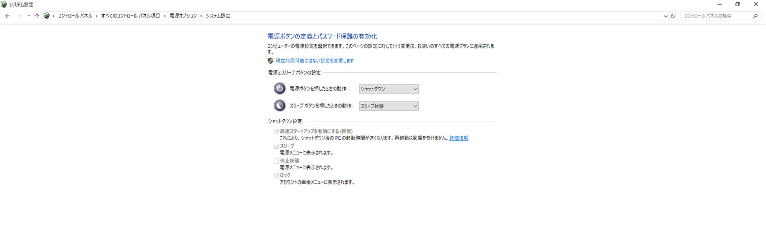 またその画面左側で[電源ボタンの動作の選択]をクリックし、表示される画面の