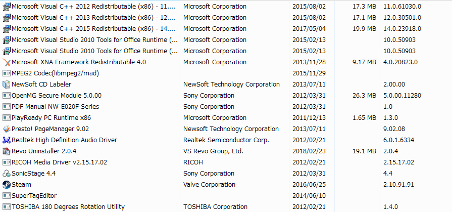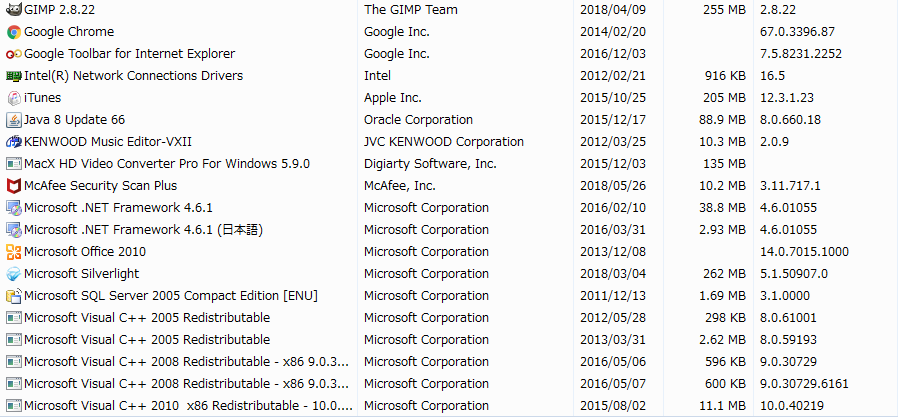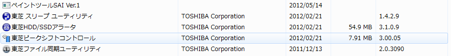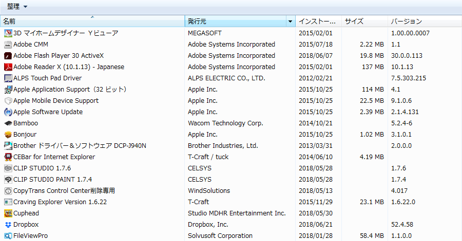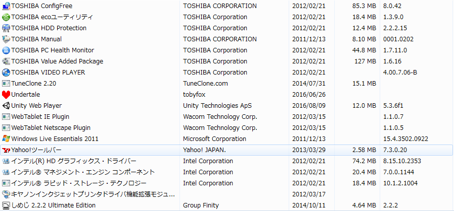 プログラムの一覧が表示されますので、すべての項目が確認できるよう