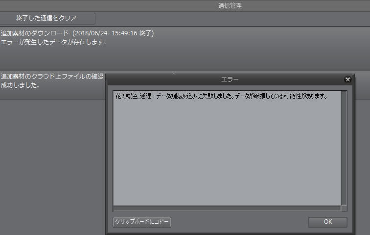 ・CLIP STUDIOの[通信管理]にてエラーが発生しているとの事ですが、