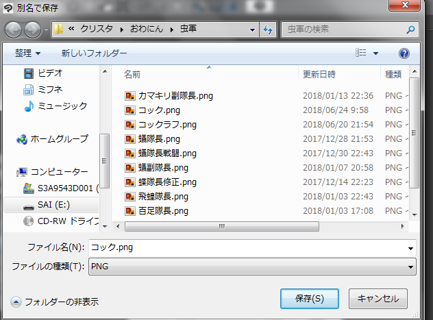 ・CLIP STUDIO PAINTでPNG保存をする際、ファイル名と保存場所を