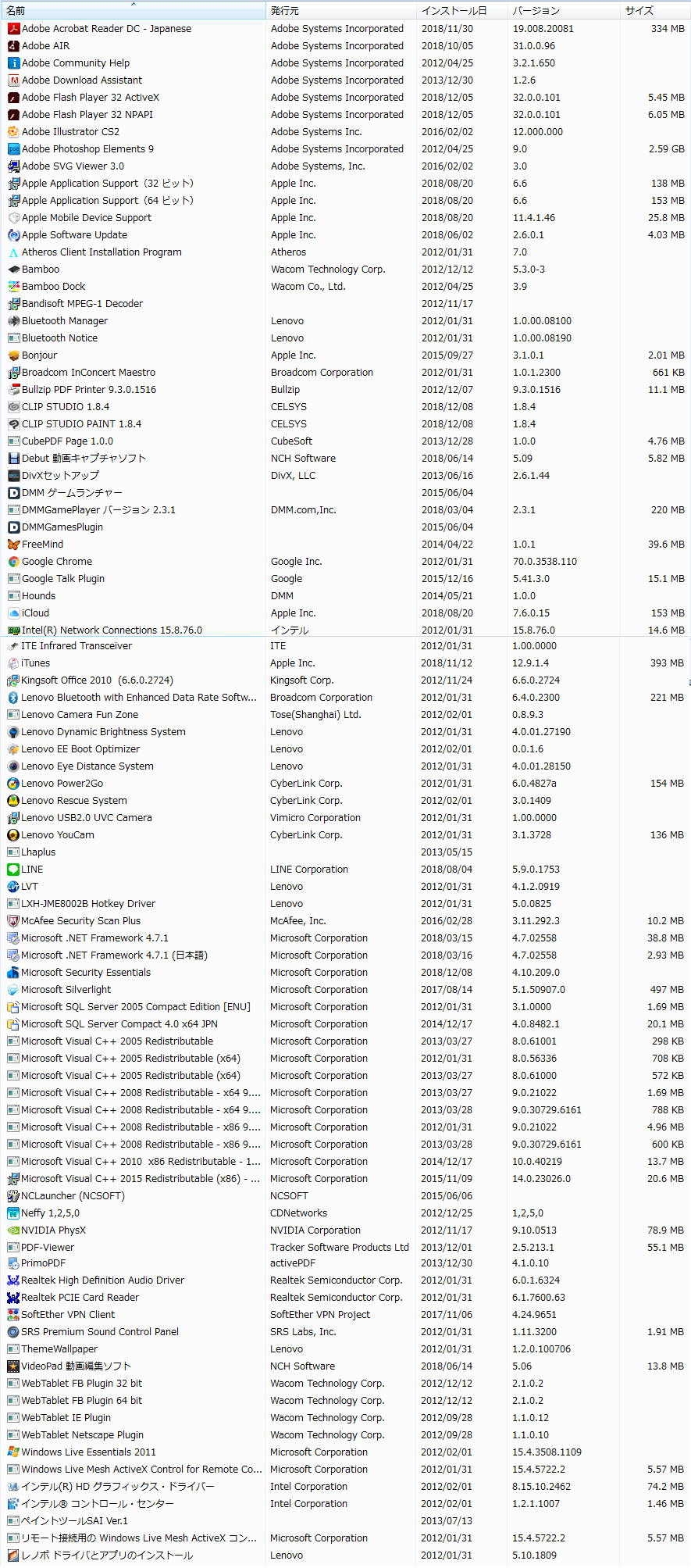 [プログラムのアンインストール(プログラムと機能)]を選択して表示される画面の