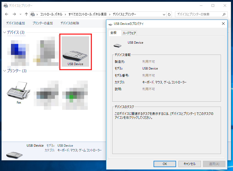 私の環境では『USB Device』という表記があり、Tab-Mate Controllerを接続すると表示され、切断すると表示されなくなります。