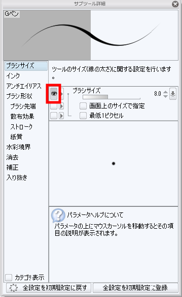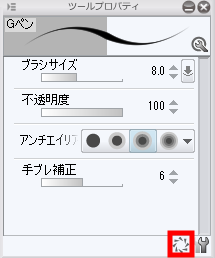 また、[サブツール詳細]を開く場合は、初期化ボタンの隣のスパナのマークを選択します。