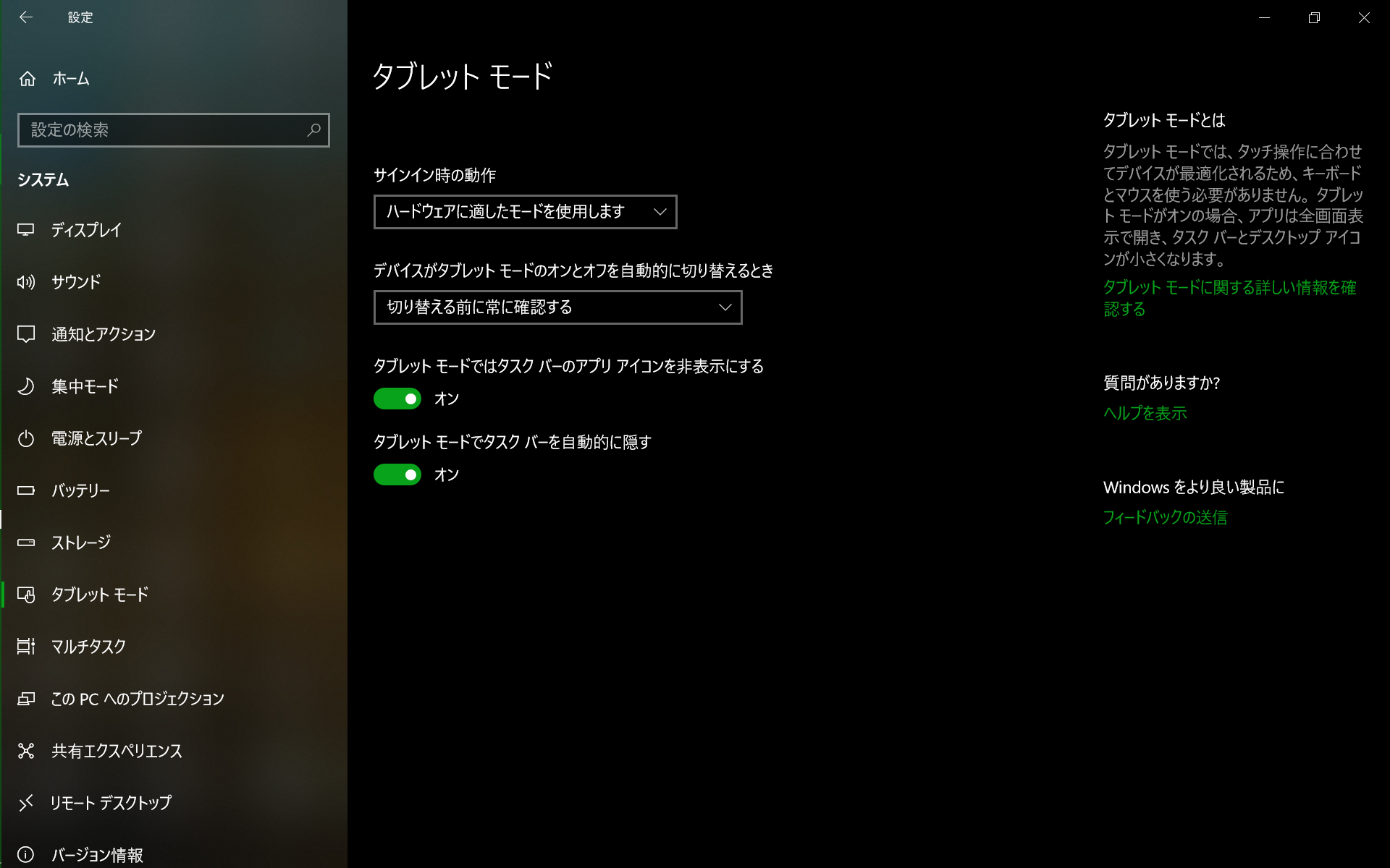 ・[Windowsスタート]→[設定]→[システム]を選択し、表示される画面の