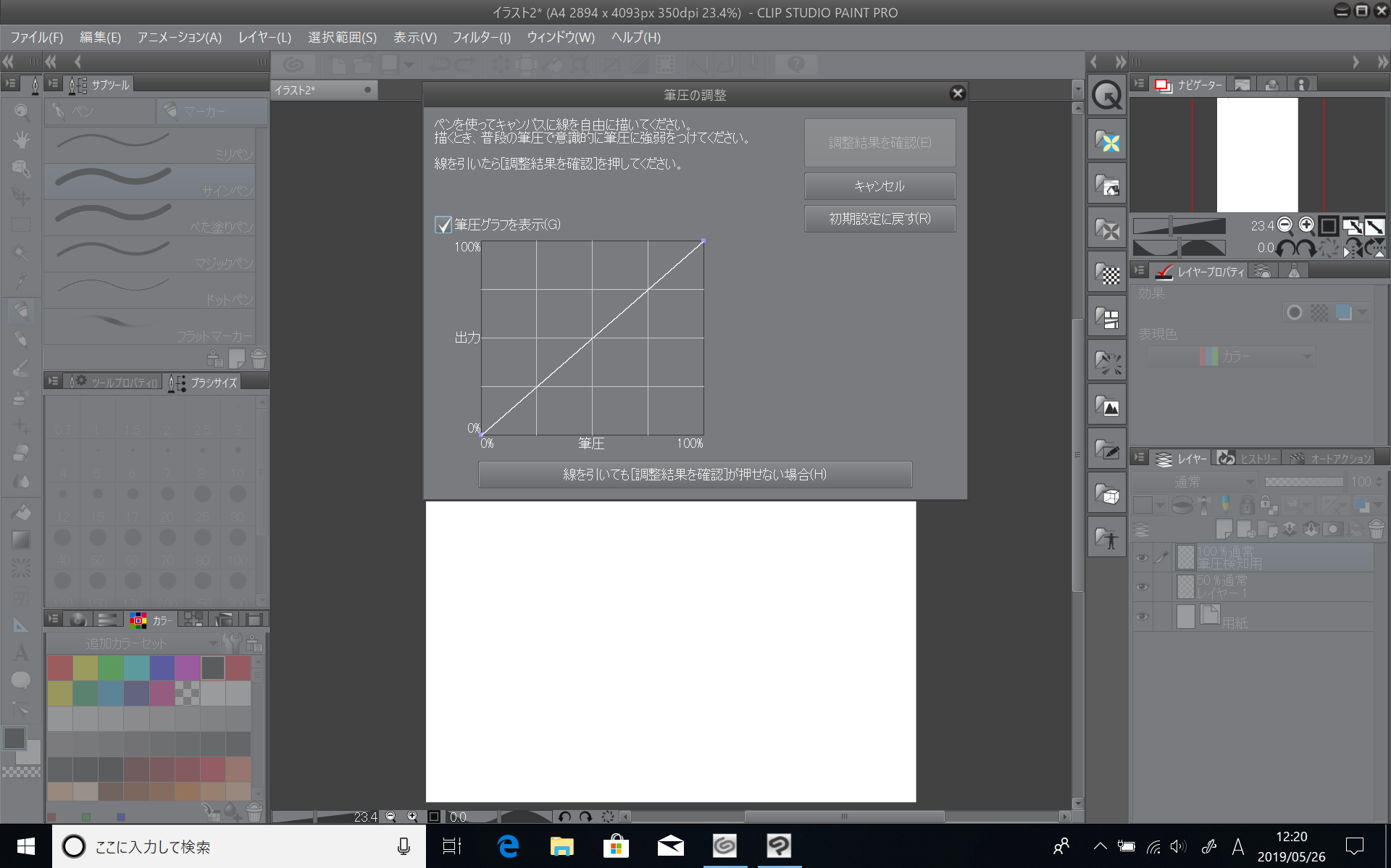 ・ペンタブレット付属のペンをご使用との事ですので、[環境設定]の[タブレット]