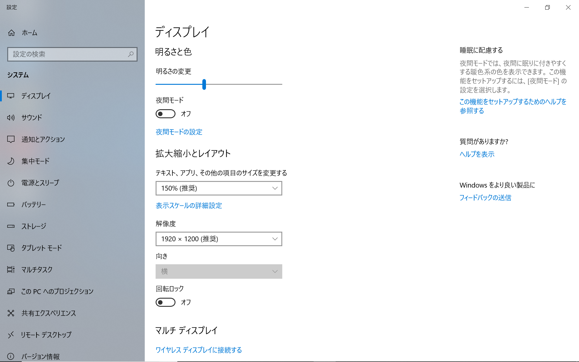 ・[Windowsスタート]→[設定]→[システム]を選択し、表示される画面の