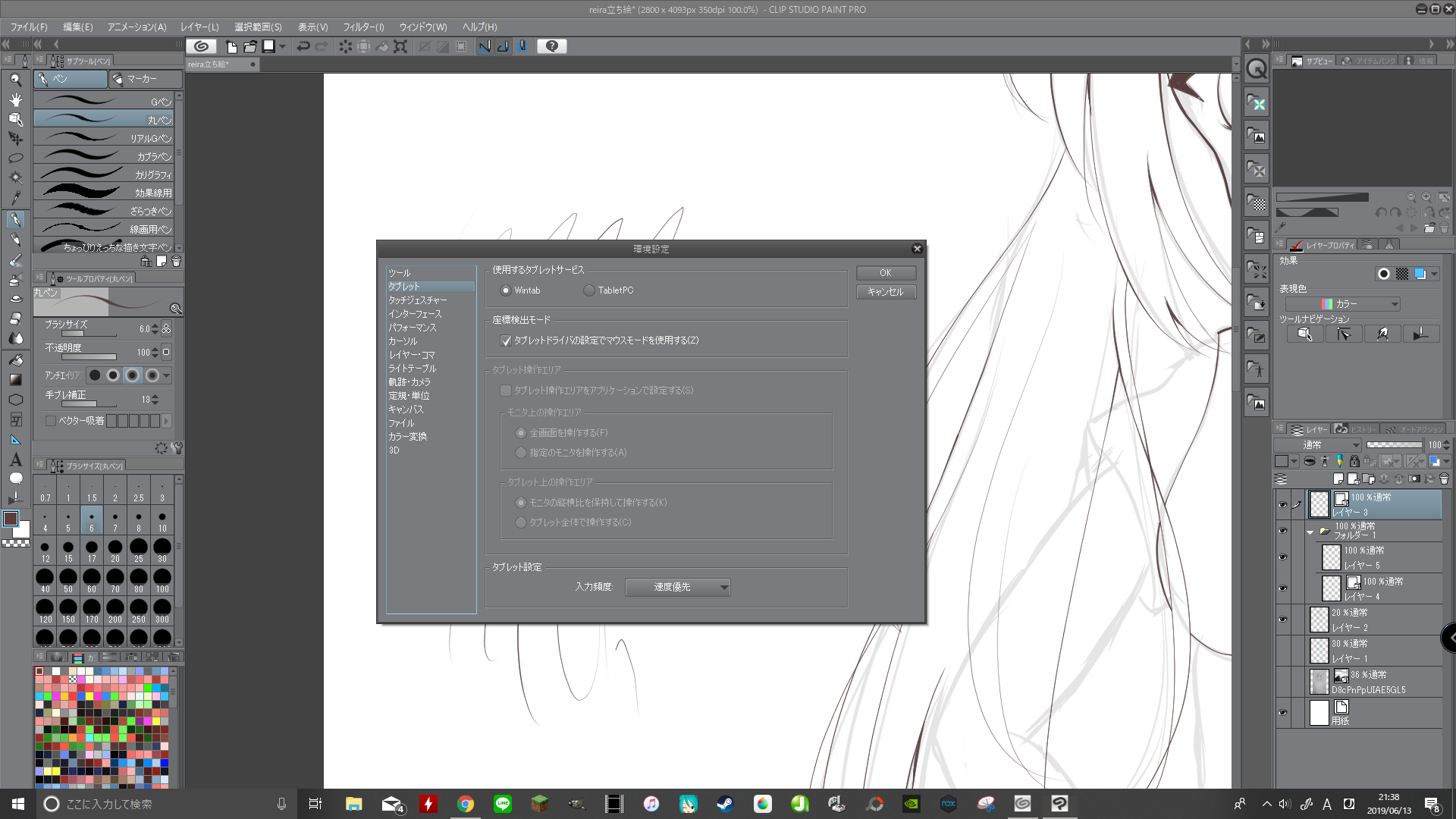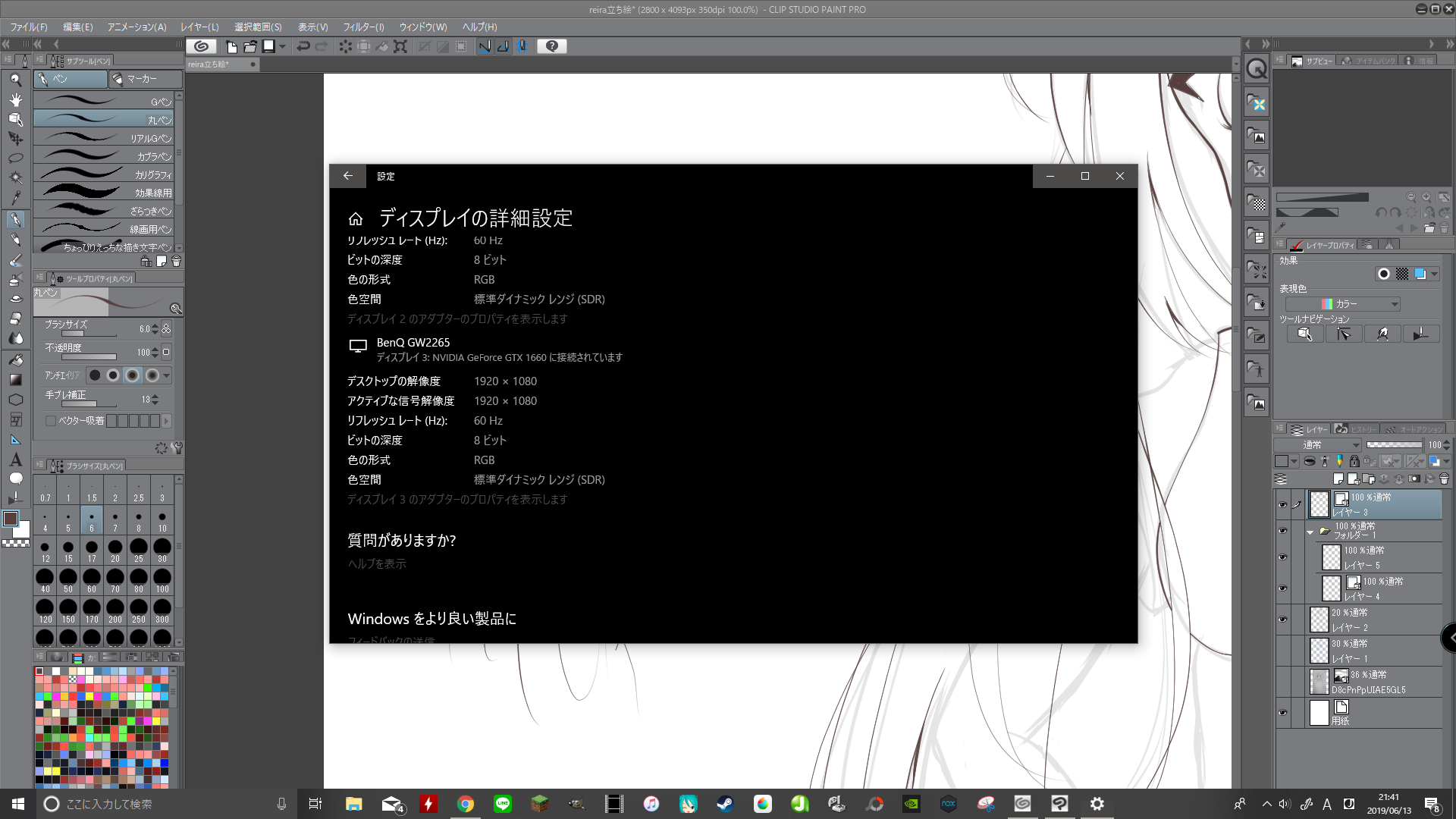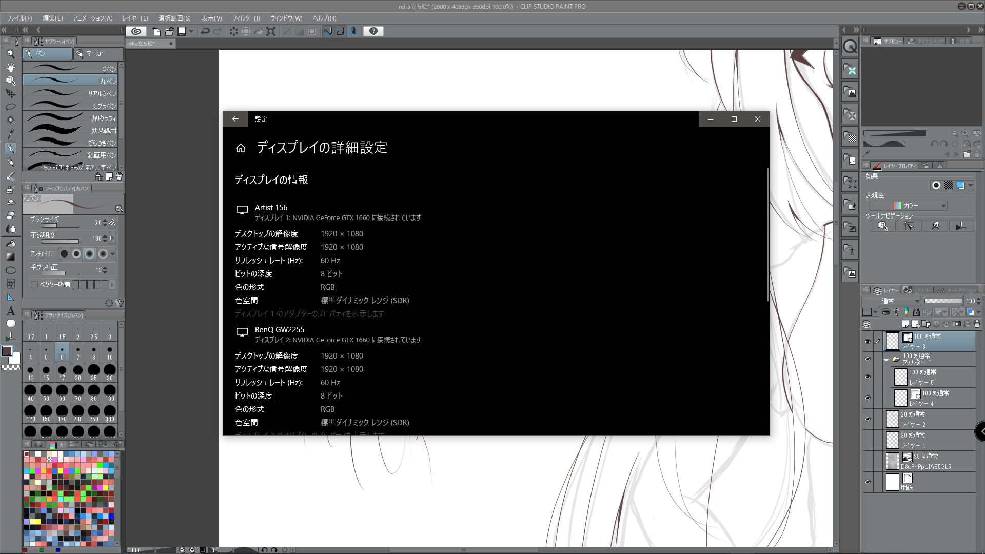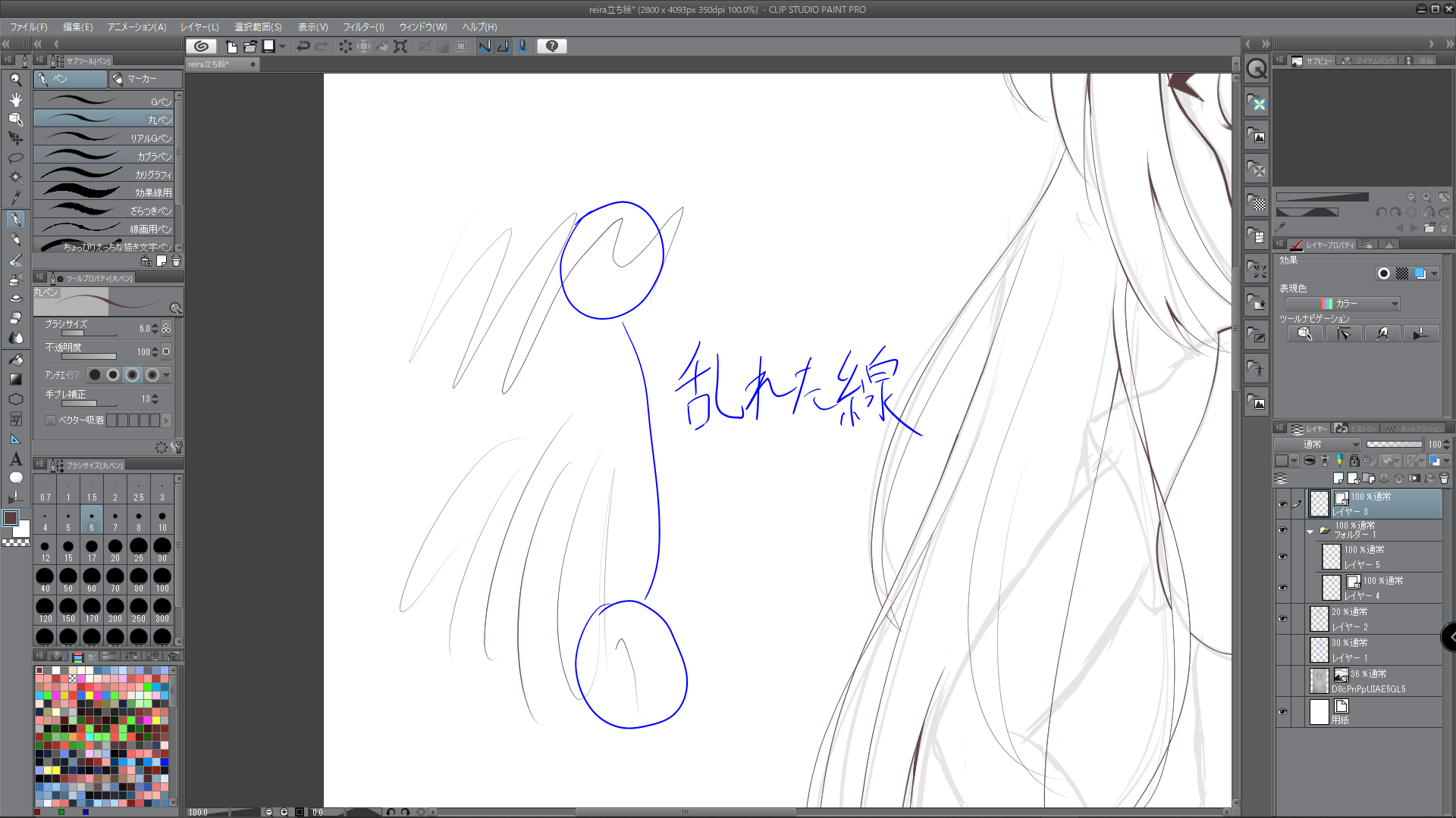 ・カクついて線が乱れた状態のCLIP STUDIO PAINTの画面全体の