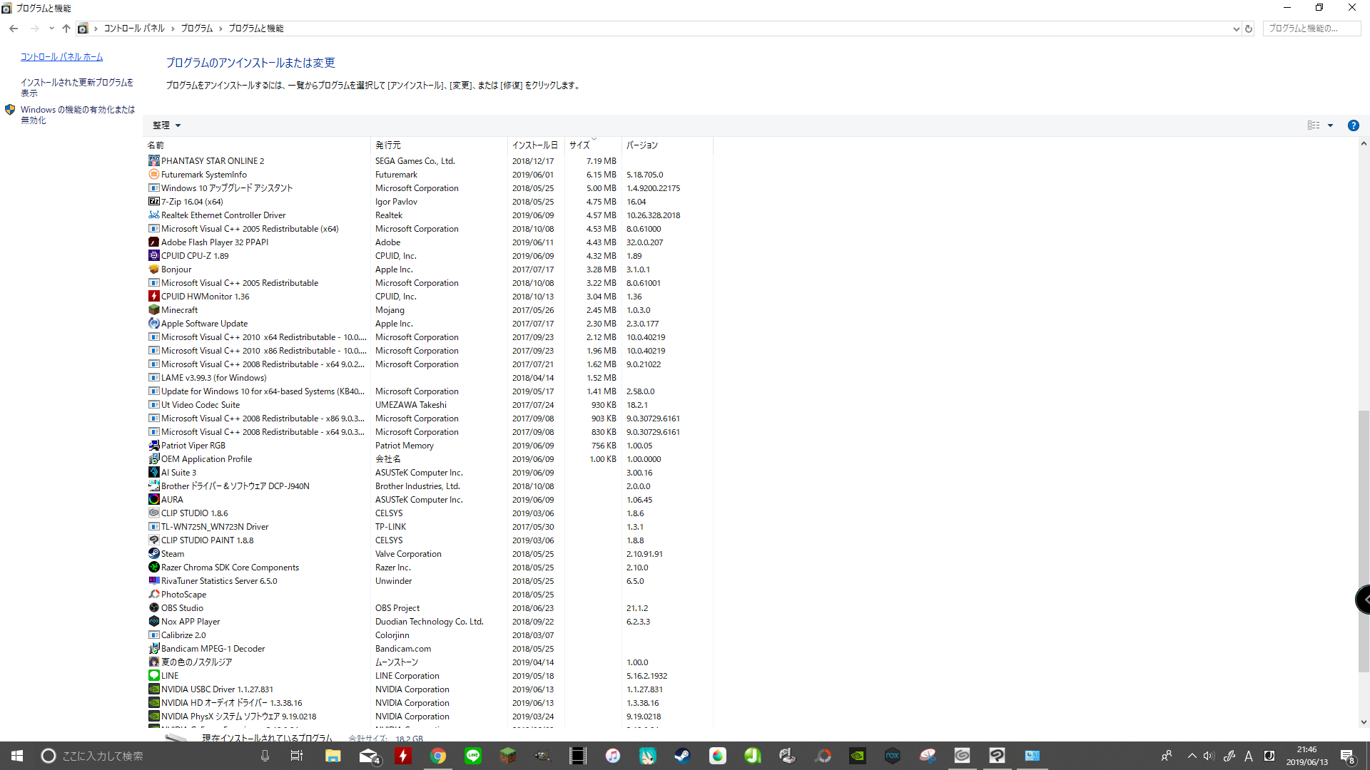 (プログラムと機能)]を選択して表示される画面のすべての項目が