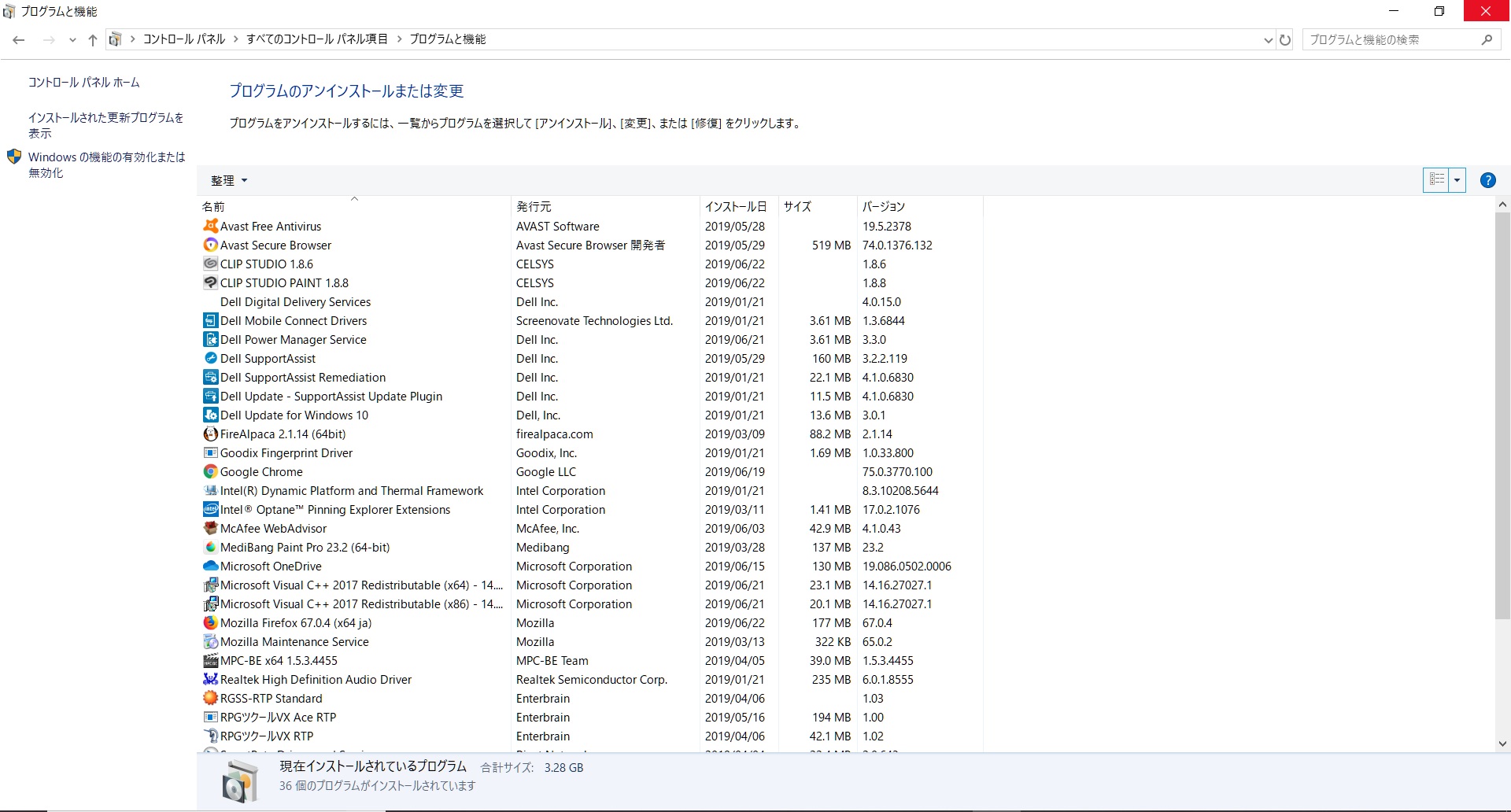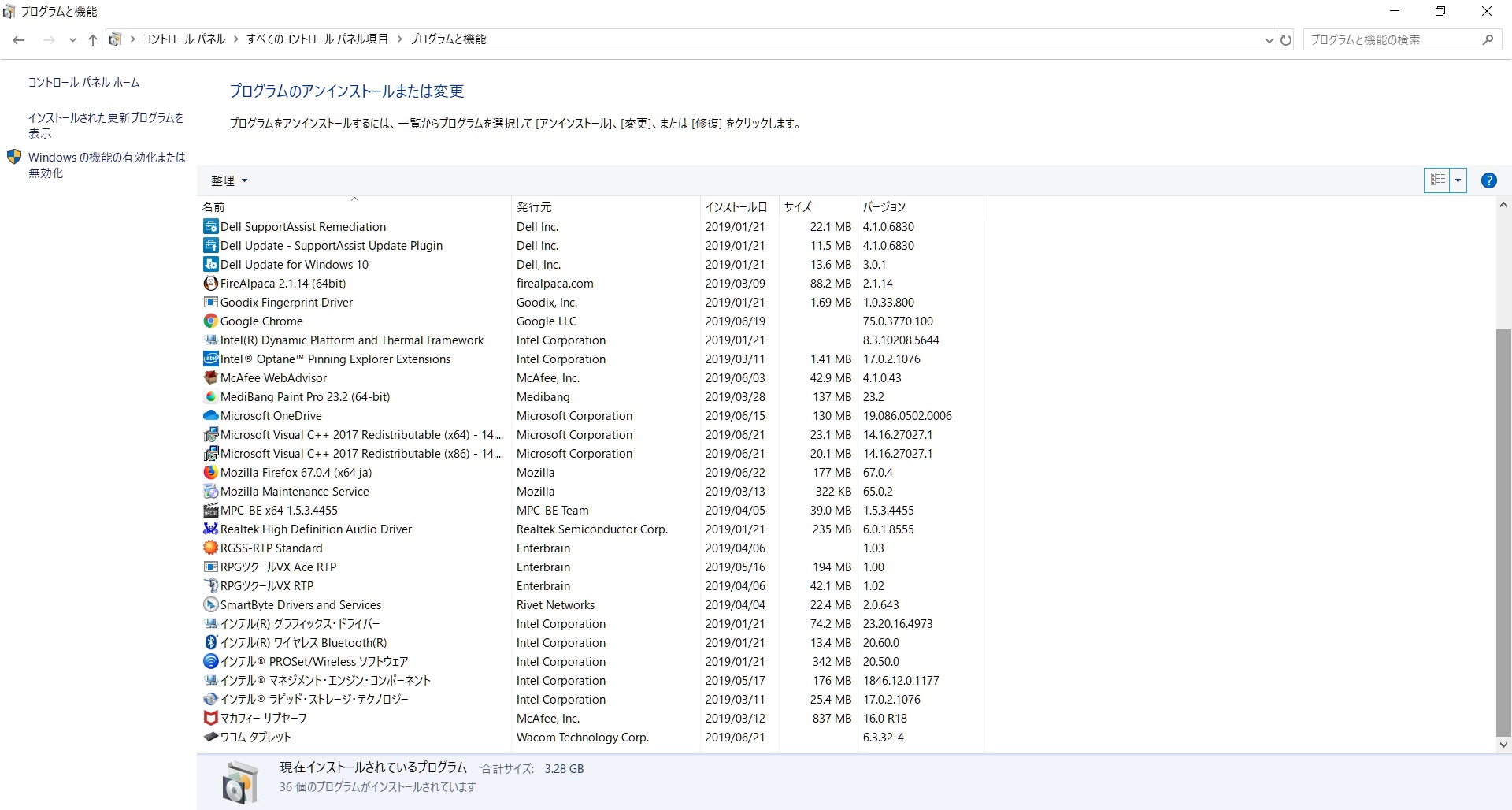 表示される画面にて[プログラムのアンインストール(プログラムと機能)]を選択