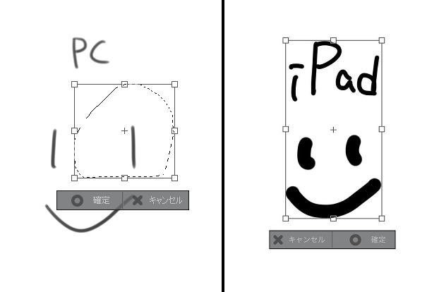 iPad版とPC版の選択移動時に出てくる確定・キャンセルの配列がそれぞれ逆なのは何故ですか? 片方に慣れるともう片方で押し間違えが連発するのでどちらかに統一していただきたいです。 宜しくお願いいたします。