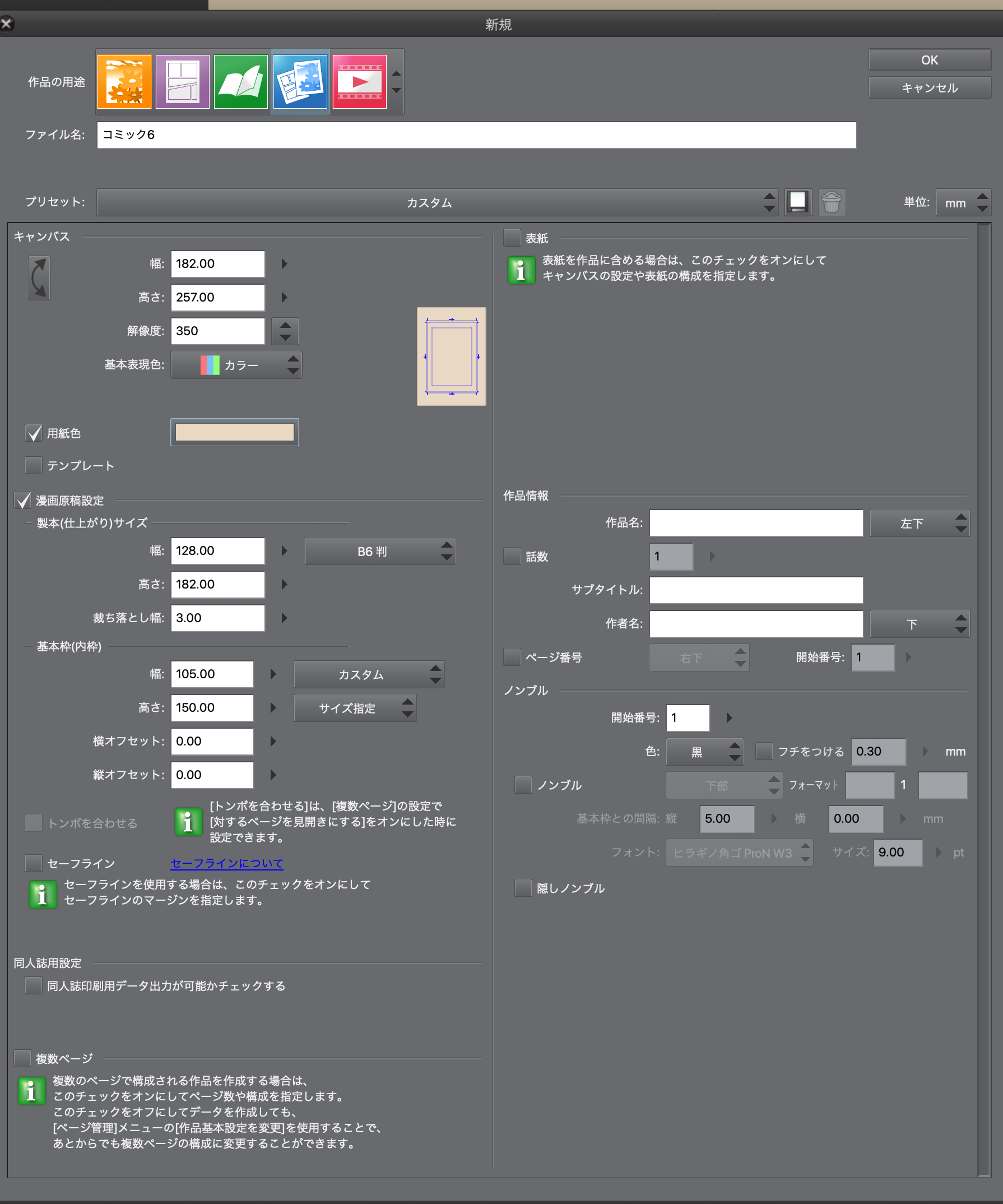 [ファイル]メニューの[新規]から新規作成される際、[作品の用途]という項目が