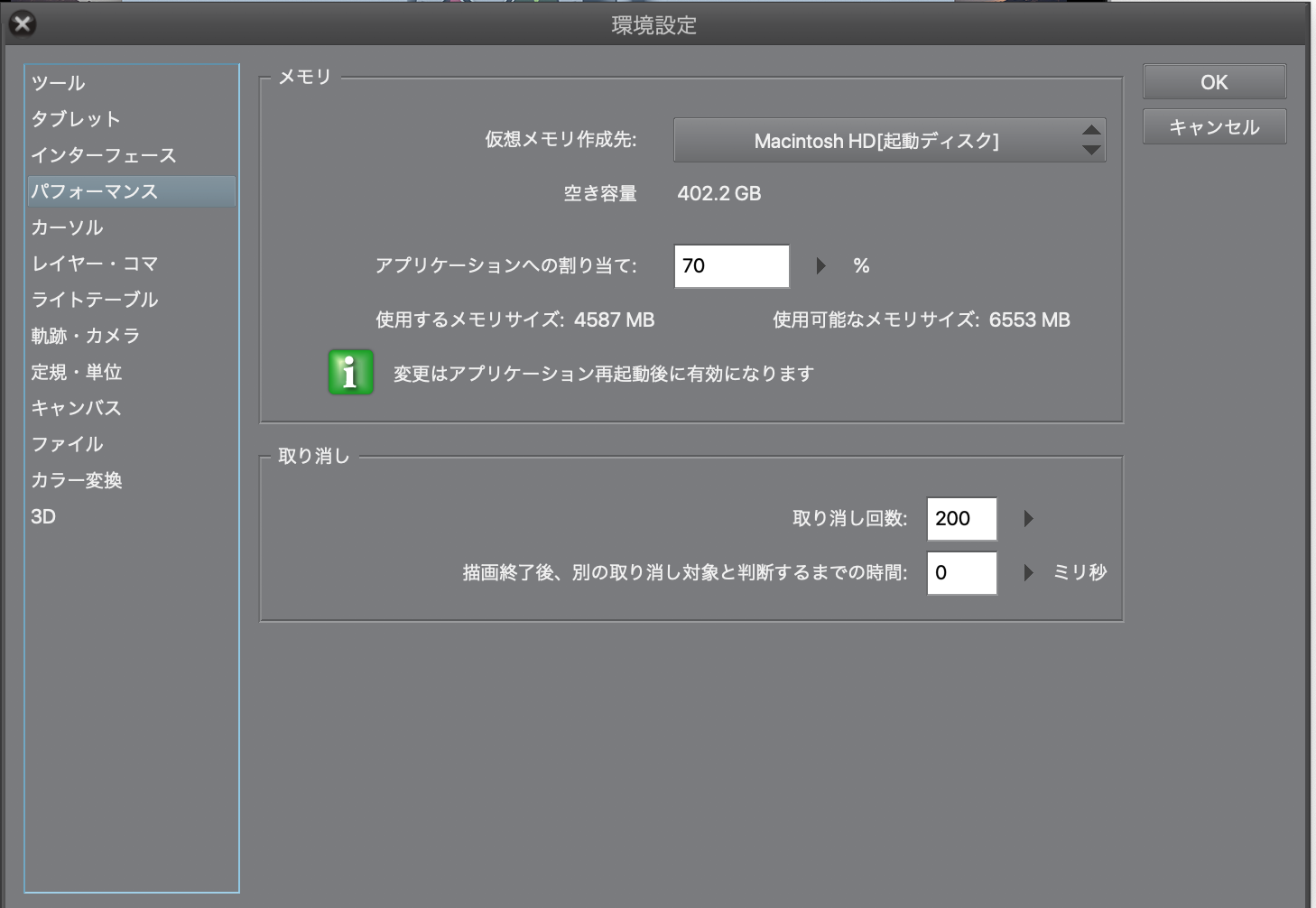 突然挙動・保存共にに遅くなりました。 起動自体は前から時間がかかっていたので問題はないのですが、グラデーションツールや塗りつぶしなどを使用すると著しくカクつくようになってしまいました。 保存は書き出しに時間がかかり、画像の解像度を下げてpng→JPEGに変換しても、15分ほどかかってしまいました。 何回か再起動やシステム終了→時間を置いて起動を繰り返したのですが、効果はありませんでした。 ペンタブレットを外すなども試したのですが、効果はありませんでした。 ------------------------------------------------------------ ■バージョン: ※Windowsは、[ヘルプ]メニュー → [バージョン情報]で確認できます。 ※MacOSXは、[CLIP STUDIO PAINT]メニュー → [バージョン情報]で確認できます。 ※iPadは、[CLIP STUDIO PAINT]アイコン → [バージョン情報]で確認できます。 ■グレード DEBUT( ) PRO( ) EX( ) ■OS Windows 7 ( ) Windows 8( ) Windows 8.1( ) Windows 10( ) MacOS X 10.10( ) MacOS X 10.11( ) macOS 10.12( ) macOS 10.13( ) macOS 10.14( ) iOS 11( ) iOS 12( ) その他( ) ------------------------------------------------------------ |