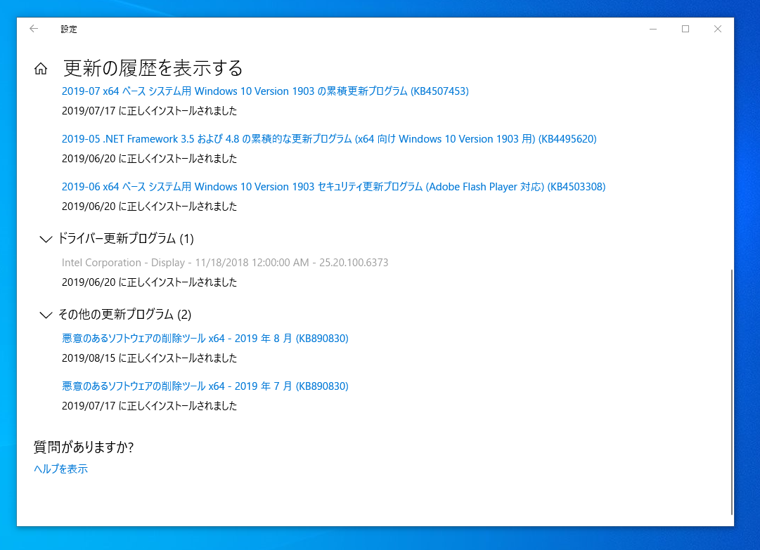 ・現在、WindowsUpdateは更新する項目のない、最新の状態でしょうか。