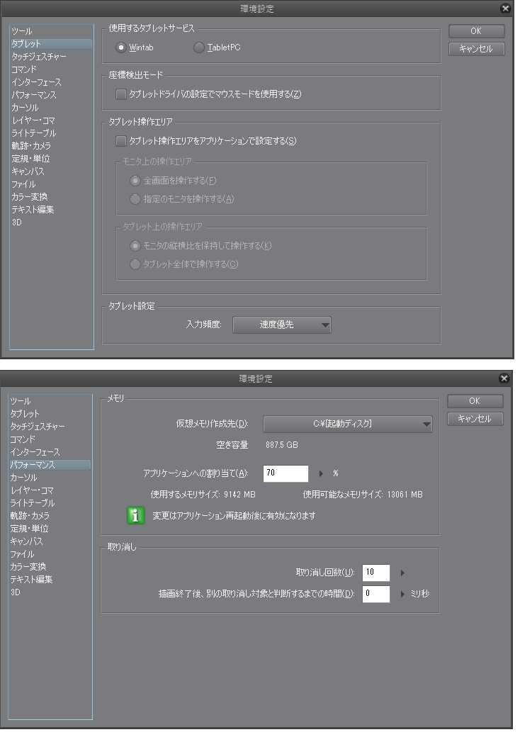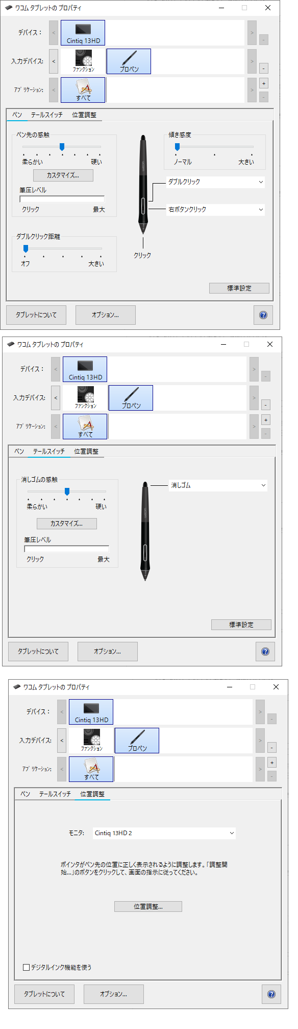 winsows7のPCからwindows10のパソコンに買い替えたところ、 こちらの内容https://www.clip-studio.com/clip_site/support/request/detail/svc/54/tid/98963 と同内容+αの遅延が発生します。 以前のパソコンよりスペックは大幅に上がっているので 性能が足りないわけではないと考えます。 OneDriveがインストールされていますが、 クリスタ使用中にクラウドの同期などもしていません。 ウィルスソフトも使用していません。 モニター・液晶タブレット・スピーカーなどは、 以前のパソコンで何の問題もなく使用していたため パソコン側の初期不良かと思い一度修理に出しましたが、 パソコン側には何も問題がないとのことでした。 修理から戻ってきたパソコンにクリスタとペンタブをインストールしなおしましたが、 やはり同様の現象が発生します。 (ペンタブのドライバーはワコムのサイトからDLし、 ドライバーをインストールした後でタブレットを接続しました) こちらhttps://www.clip-studio.com/clip_site/support/request/detail/svc/54/tid/98963の スレ主様のおっしゃる通り、 取り消し回数を10に下げたところ、抜きの遅延自体は改善はしたものの、 ストロークの始まりや途中で、線やペンポインタの〇の表示が一瞬ガクンと止まるというか引っかかるというか、 とにかくペンの動きに遅れて表示されるような現象が時々発生します。 この現象はペンを動かす速さに関係なく起きるような気がします。 主に使用しているペンはASSETSからダウンロードしたブラシ先端形状に素材を使用しているペンですが、 以前のwin7で使用している際は何の問題もありませんでした。 windows付属のペイントではこの遅延は起きないようです。 線が思った通りに引けないのは非常にストレスです。 この現象は何が原因で、何をしたら改善しますでしょうか? 必要そうなスクリーンショットを添付します。 他にも必要でしたらお書き添えください。 周辺機器 VL-24WM1 cintiq13HD スピーカー:MM-SPWD3BKN 外付けHDD(USB経由):MARSHAL MAL21000EX3-BK パソコンのバージョン ※clipstudioPaint推奨パソコンとして販売されていたものです。 NVIDIA GeForce GTX1050 2GB SSD:1TB※購入したばかりなので空きは十分あります。 更新プログラムは最新です。 ![]() クリスタ環境設定 ![]() ペンとwindowsInk ![]() ディスプレイ設定 ![]() ![]() 電源オプション ![]() プログラム一覧 ![]() ペンタブのプロパティ ![]() ![]() 宜しくお願い致します。 ------------------------------------------------------------ ■バージョン: 1.9.3 ■グレード DEBUT( ) PRO( ) EX( 〇 ) ■OS Windows 7 ( ) Windows 8( ) Windows 8.1( ) Windows 10( 〇) MacOS X 10.10( ) MacOS X 10.11( ) macOS 10.12( ) macOS 10.13( ) macOS 10.14( ) iOS 11( ) iOS 12( ) その他( ) ------------------------------------------------------------ |