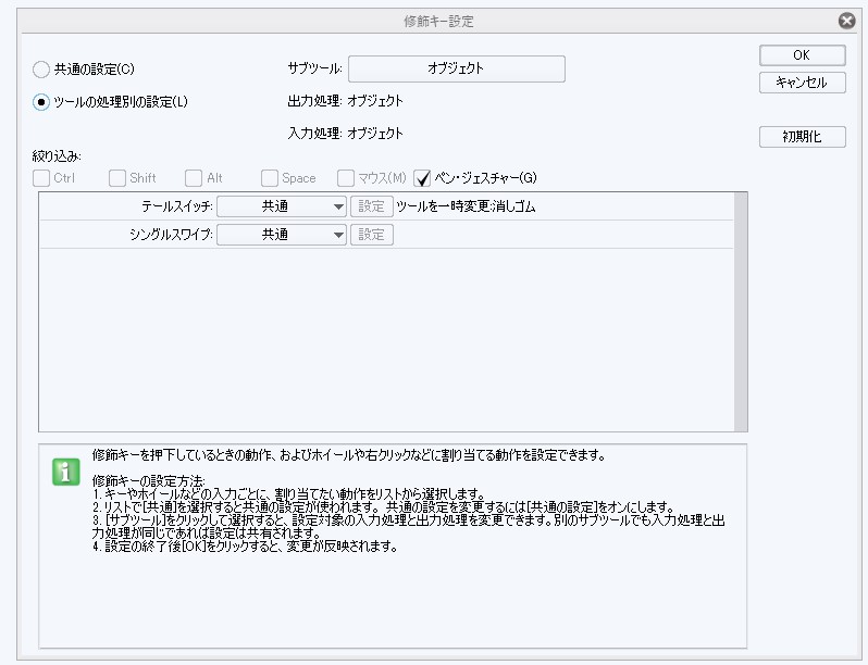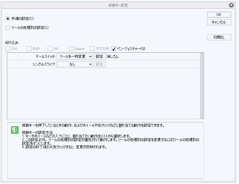・お知らせいただいた「修飾キー設定のシングルスワイプを「ツールを一時変更/