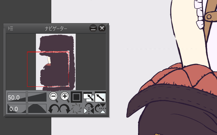 クリスタ形式で保存をして再度開くと、 50%以下の拡大率では分かりませんが、 51%以上拡大するとデータの中に穴あきができています。