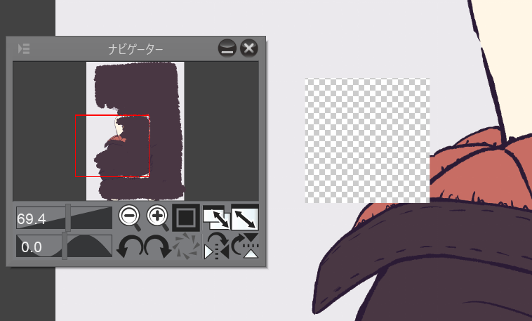 保存をして再度開くと必ずこの現象が起こるわけではなく、 何度か作業日数をかけている中、ある日突然なります。 なので原因もよくわかりません。 (拡大50%) (拡大69%) (jpegで保存すると該当部分が穴あきになる)