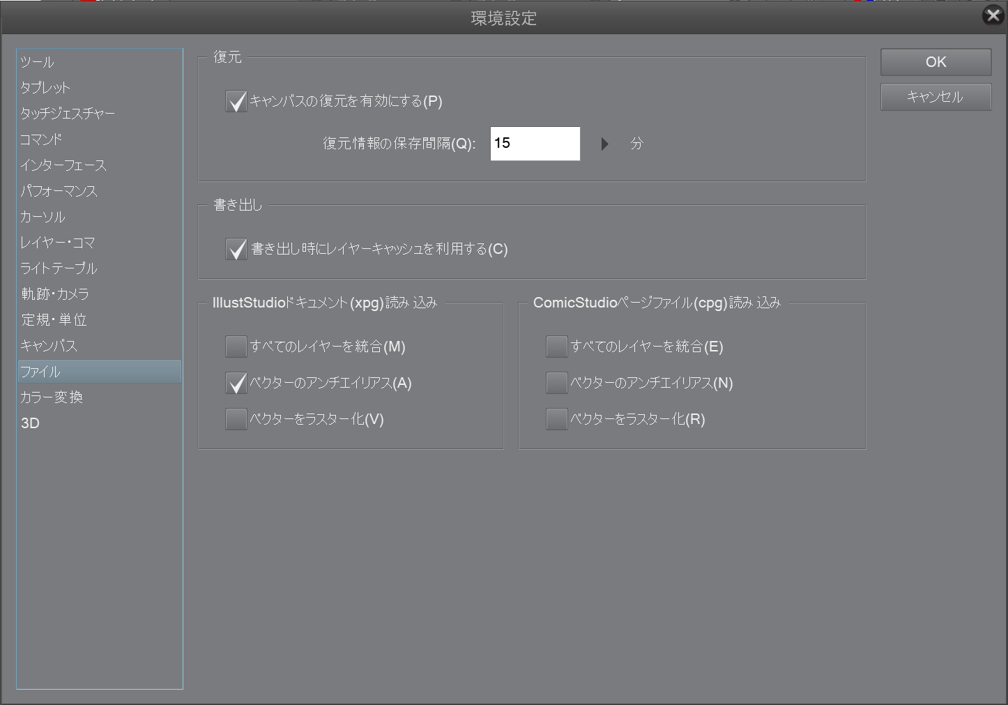また、[環境設定]を選択し、表示される画面の左側で[ファイル]を選択し、