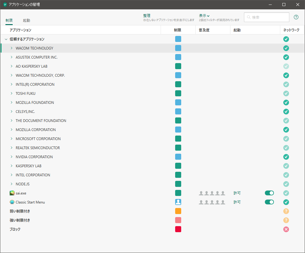 windows7からwindows10へ移行しましたところ、 クリップスタジオペイントの動作に下記不具合で悩まされております。 (win7の時よりハイスペックにカスタムしたwin10を使用しています。) ------------------------------------------------------------ ・ペンカーソルのちらつき(ストローク中チカチカ消える) ・ストロークのひっかかり(特に最後のはらい) ・win7で重かったペンがさらに重くなっている ・縮小拡大の動作遅延 ------------------------------------------------------------ ■ひとまず試したこと ------------------------------------------------------------ ・セキュリティソフトの変更 noton→eset→カスペルスキー ・ペンタブ、クリップスタジオペイントのバージョンダウン ・SAIで使用してみたところ、特に遅延はみられませんでした ・クリップスタジオにて 手ぶれ補正を下げる 仮想メモリ先の変更 使用するメモリサイズの変更 取り消し回数の変更 ------------------------------------------------------------ 使用ペンタブレットは wacom intuos5 TPH-850K モニターは FlexScan EV2730Q 下記、必要そうなスクショを張り付けさせていただきました。 大変お手数ではございますが、改善点ございましたらお教えいただけますと幸いでございます。 どうぞよろしくお願いいたします。 ![]() ![]() ![]() ![]() ![]() ![]() ![]() ![]() ※↑カスペルスキー アプリケーションの管理画面 ------------------------------------------------------------ ■バージョン: ※Windowsは、[ヘルプ]メニュー → [バージョン情報]で確認できます。 ※MacOSXは、[CLIP STUDIO PAINT]メニュー → [バージョン情報]で確認できます。 ※iPadは、[CLIP STUDIO PAINT]アイコン → [バージョン情報]で確認できます。 ■グレード DEBUT( ) PRO( ) EX( 〇 ) ■OS Windows 7 ( ) Windows 8( ) Windows 8.1( ) Windows 10( 〇 ) MacOS X 10.10( ) MacOS X 10.11( ) macOS 10.12( ) macOS 10.13( ) macOS 10.14( ) iOS 11( ) iOS 12( ) その他( ) ------------------------------------------------------------ |