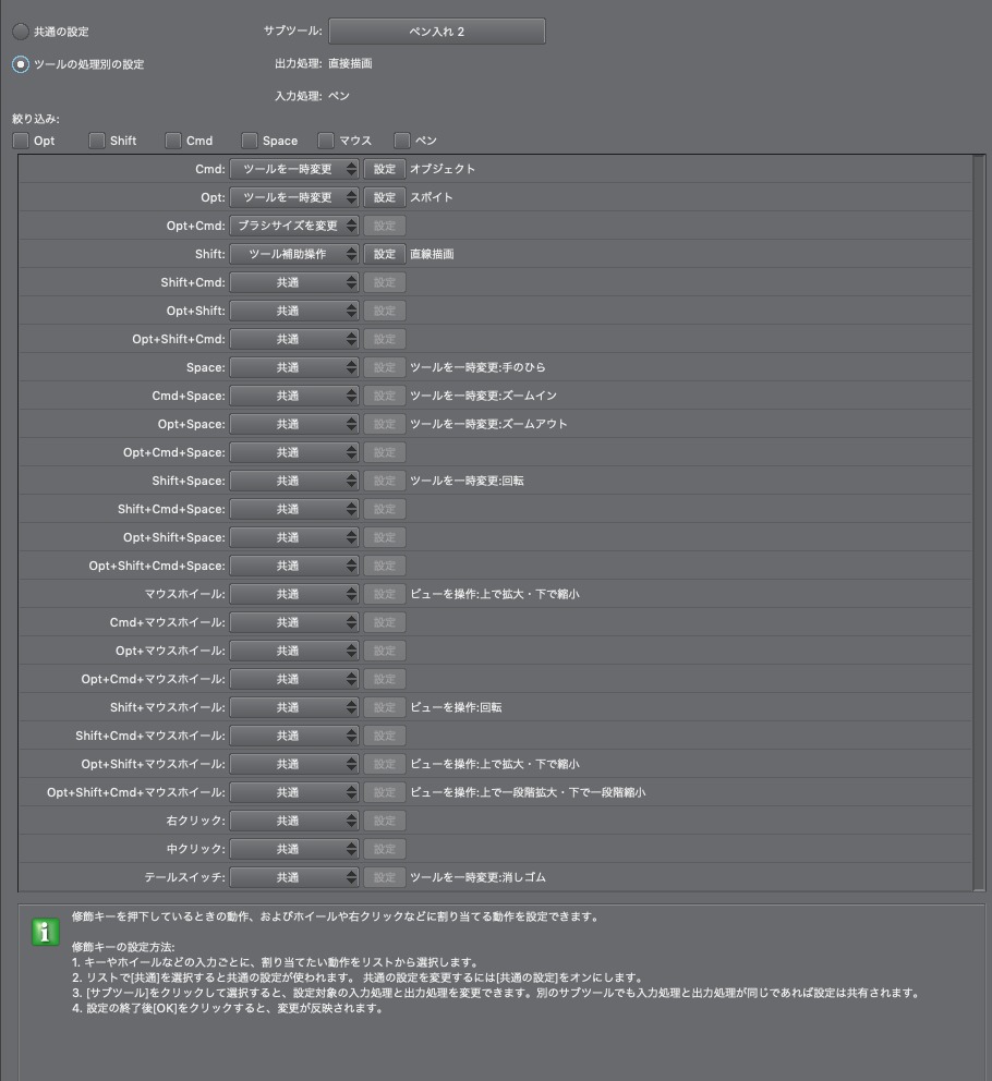 [CLIP STUDIO PAINT]メニューの[修飾キー設定]を選択し、表示される画面の