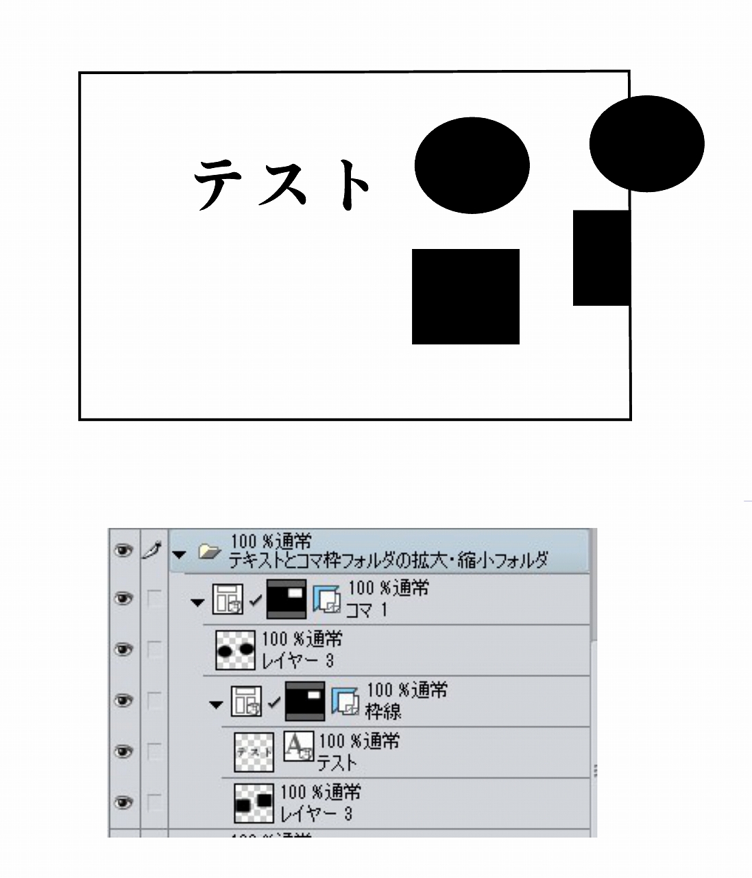 テキストもコマ枠フォルダも同時に拡大・縮小できました。