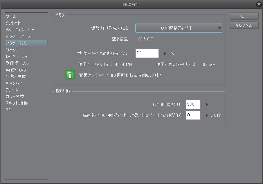 [パフォーマンス]を選択して表示される画面のスクリーンショットを