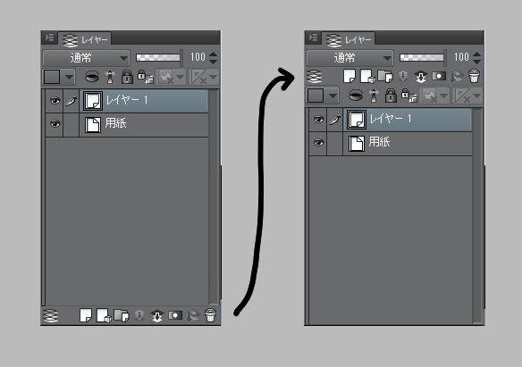 レイヤーウィンドウのボタン配置 |