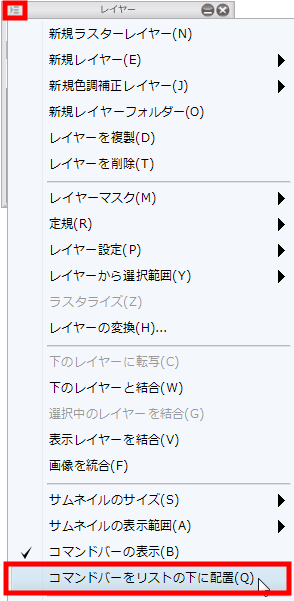 製品バージョンの1.2.3にて、レイヤーパレット下部のコマンドバーを