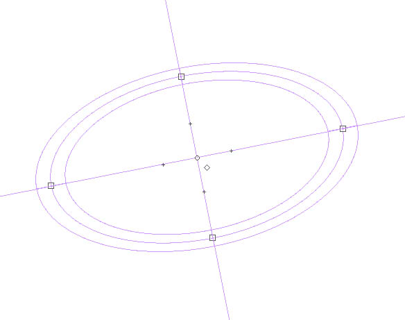 同心円定規の中心の十字ハンドルをドラッグしていただくことで軸に沿って