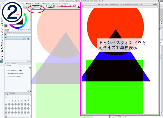 「キャンバスの単独表示(フローティング化)」する際のウィンドウサイズについて |
