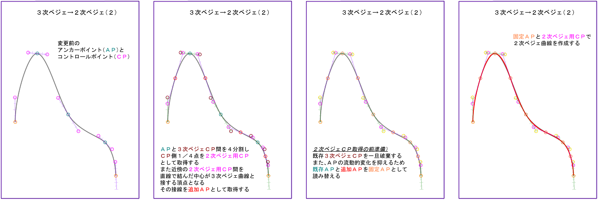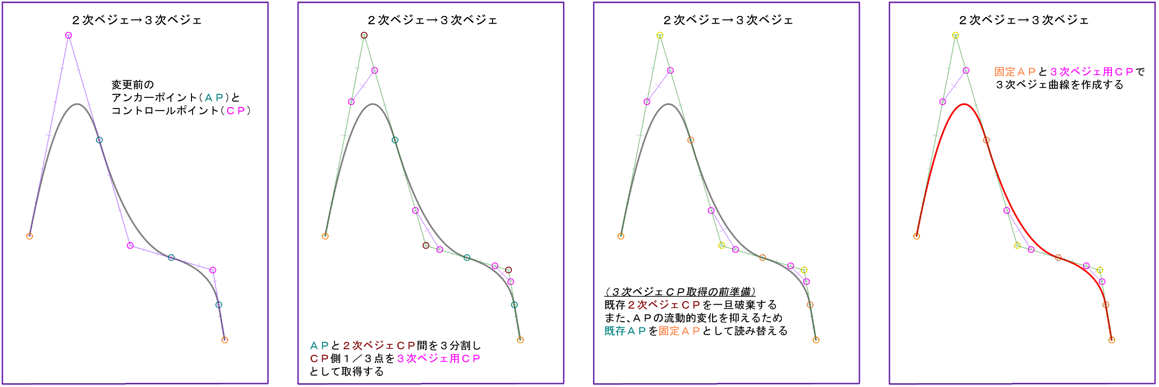 *スプラインから3次ベジェへは同じ展開なので省略しています。