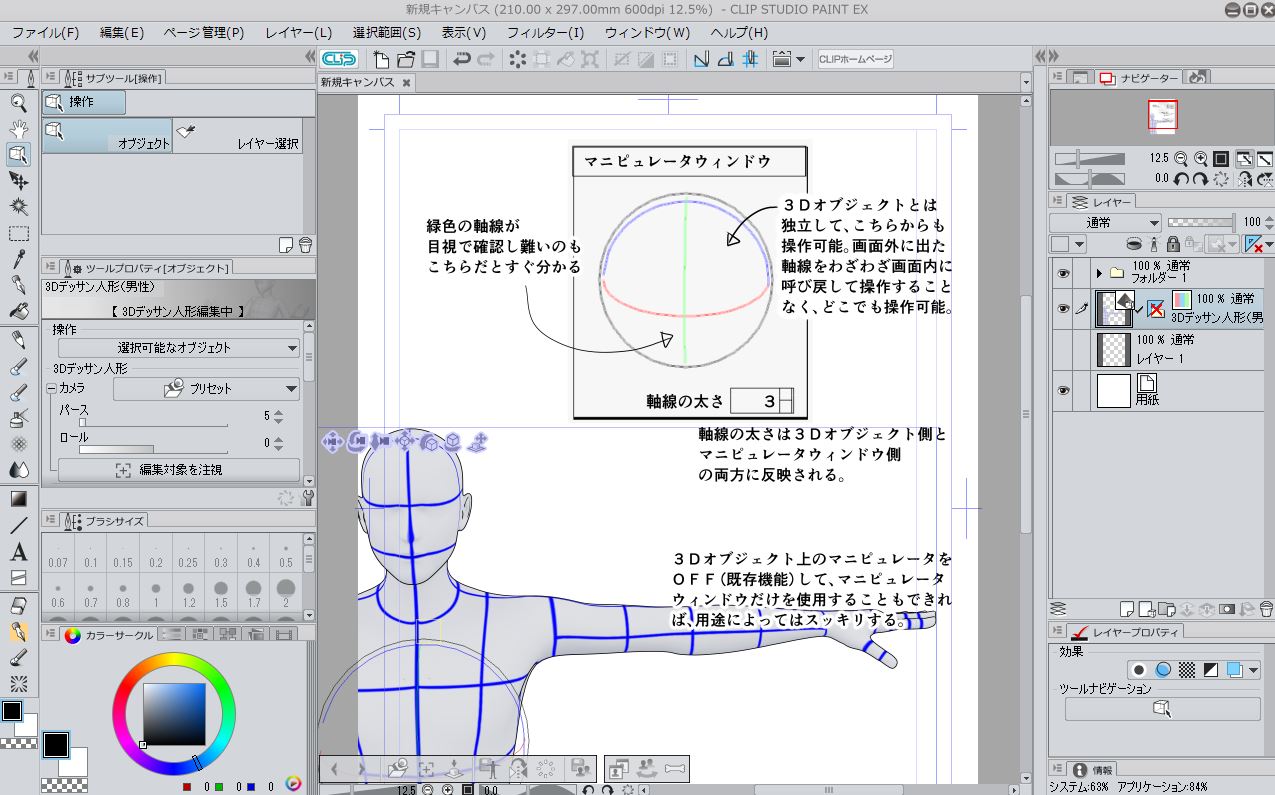 先日公開いたしましたCLIP STUDIO PAINTにて3Dマニピュレータの太さと