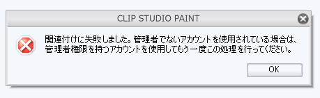 「管理者として実行」を選択してCLIP STUDIO PAINTを起動しても同様です。