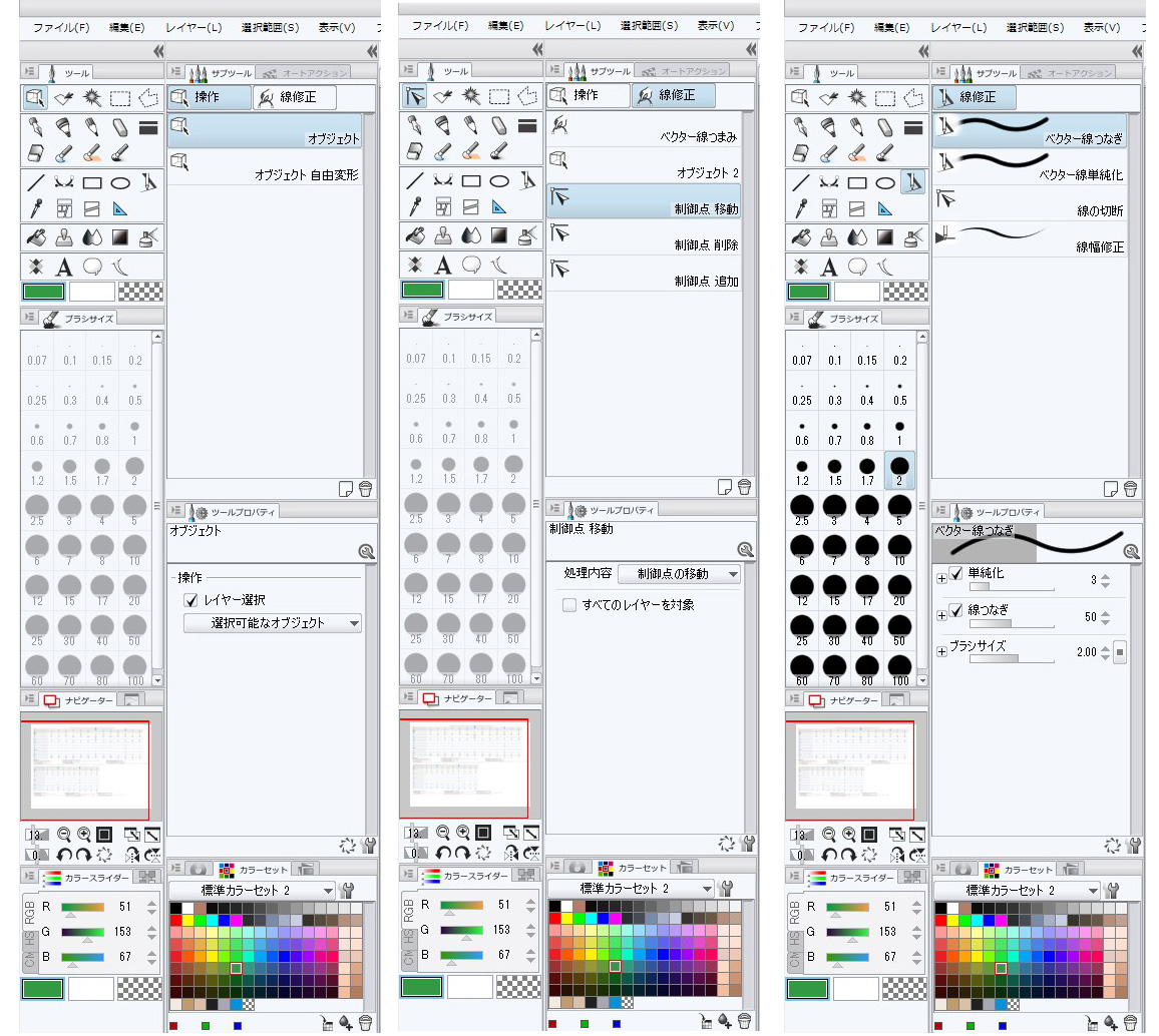 [線修正]ツールを選択し、サブツールパレットで「ごみ取り」を選択してください。