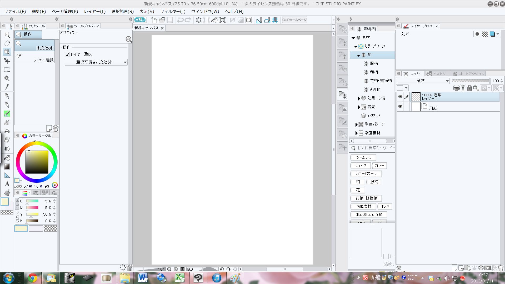 ・左側のツリーで、一番上の[素材]、その下の[カラーパターン]、さらにその下の[柄]を選び、