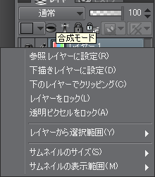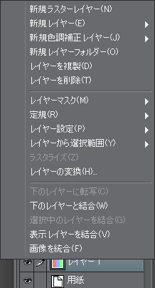 クリスタのレイヤパレットにて右クリックした際に表示されるメニューですが
