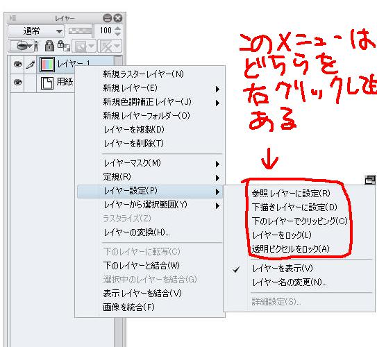 (参照レイヤーに設定とか下書きレイヤーに設定とか、レイヤー名クリックした場合でも