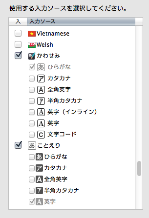 ・[システム環境設定]→[言語とテキスト]→[入力ソース]でチェックが