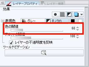 [トーン]または[減色表示]→[モノクロ]をONにしていただく