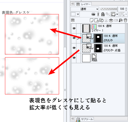 [トーン化]を適用したレイヤーは表示倍率が低い場合に汚く見えないような