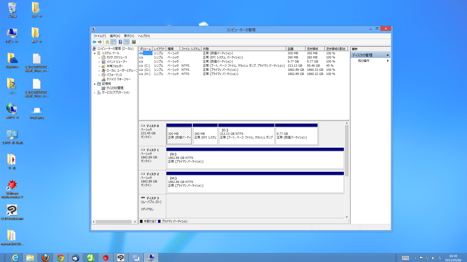 ディスクの管理をクリックし表示された状態でのスクリーンショット: