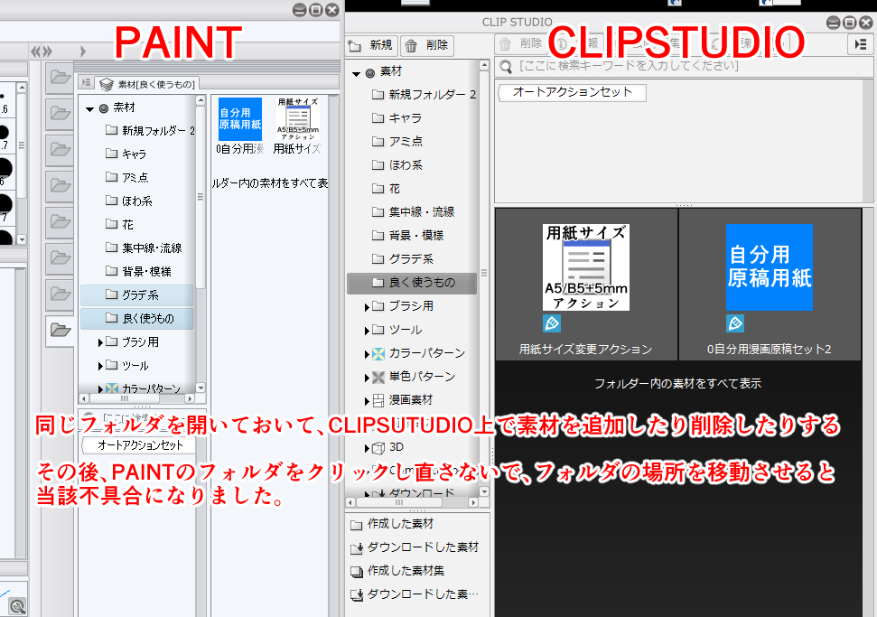 2.現象が発生した際に、「CLIP STUDIO」の素材一覧でも最上位の[素材]が選択されて