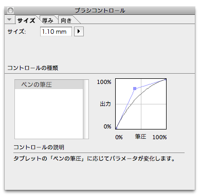 [カブラペン]サブツールを選択後、[ツールプロパティ]パレットの
