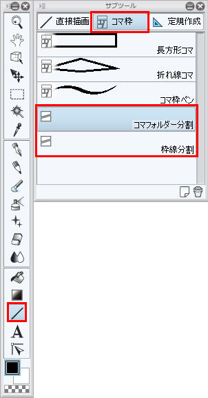 5.ツールだけ初期化されて起動するので、[図形]ツール内の[コマ枠]